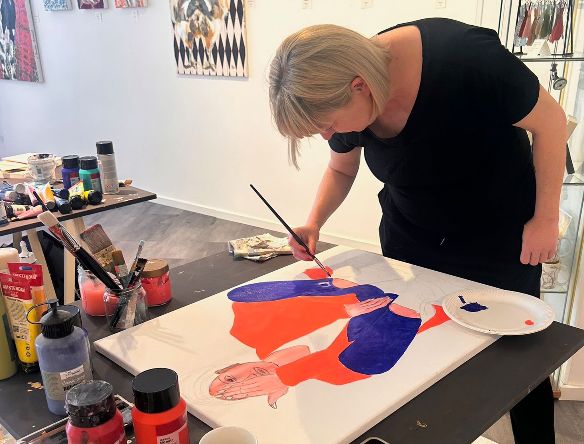 Freies Malen nach Lust und Laune, begleitende Unterstützung von Dozentin Melanie Ellmers, Anfänger und Fortgeschrittene.